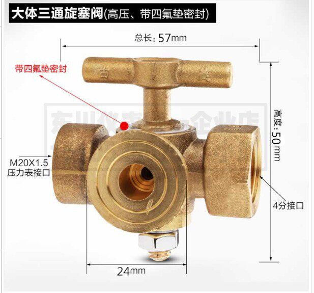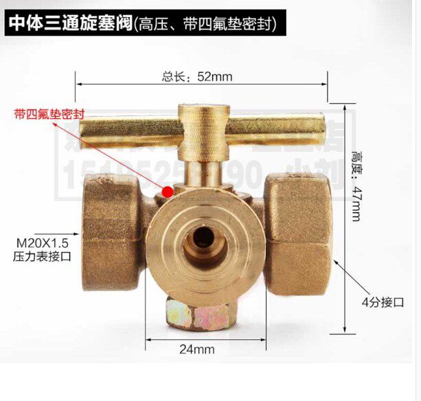 All copper thickness pressure gauge three-way plug valve Boiler pressure leakage coke M20*1 5 4 points