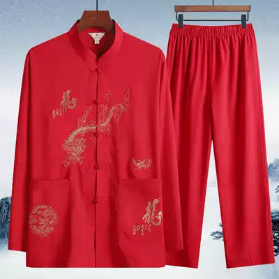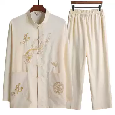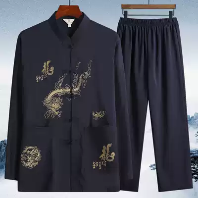 Tang suit men's long sleeve suit middle-aged and elderly father's grandfather's spring and autumn Taiji suit two-piece old man's clothing