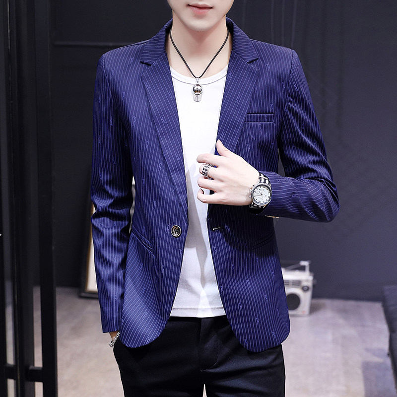Men's casual suit 2021 spring new striped jacket small suit men's youth trend handsome slim single west