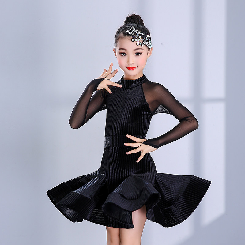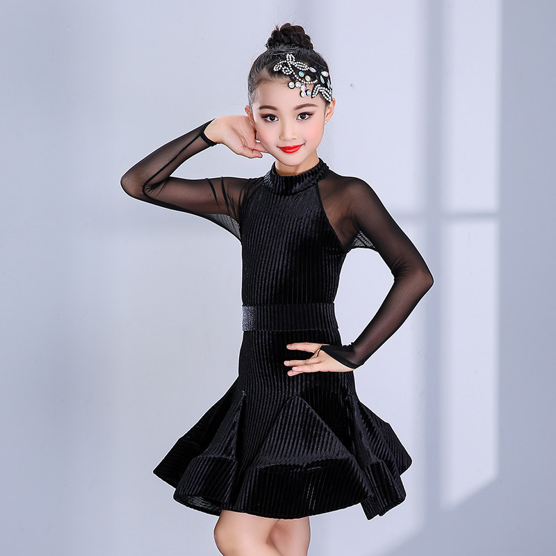 Girl's spring and autumn long sleeves new Latin dance promotion to competition rules Conserve web yarn Stripes to perform children's practice clothes