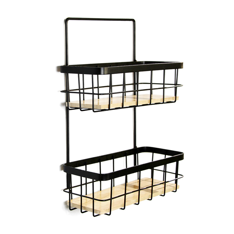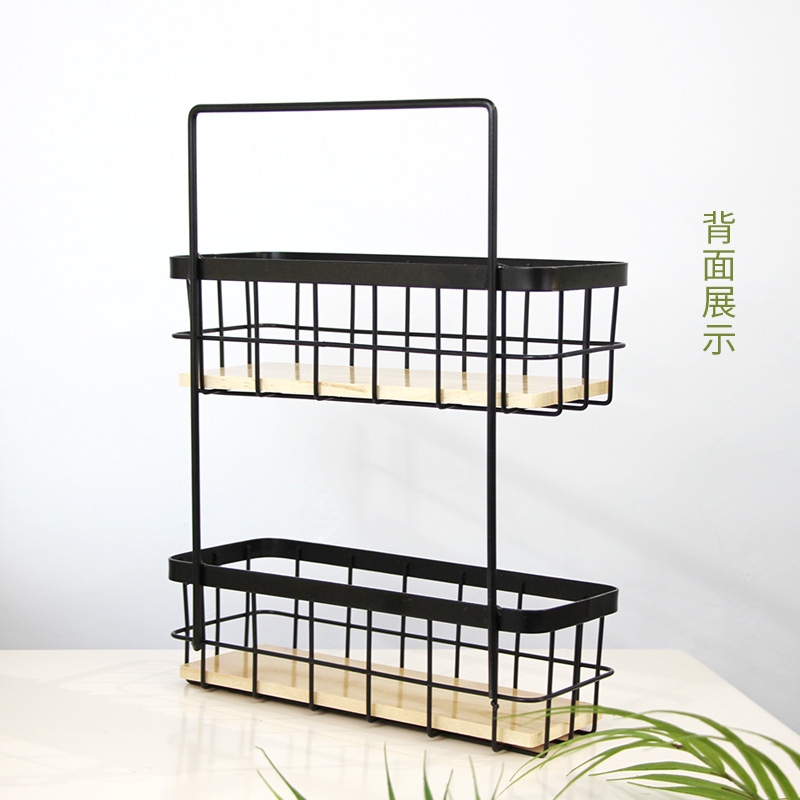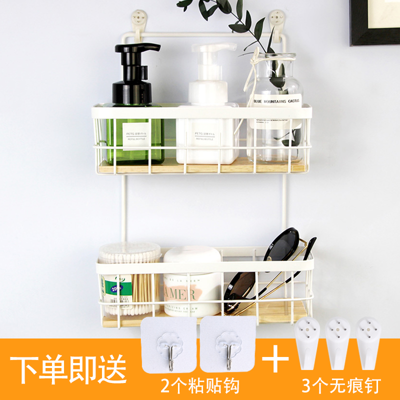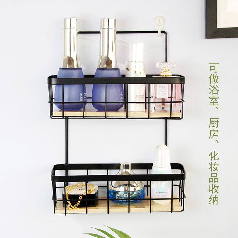 Envy and leisurely Nordic wrought iron wall hanging basket double-layer storage rack free punching simple bathroom cosmetics storage rack kitchen