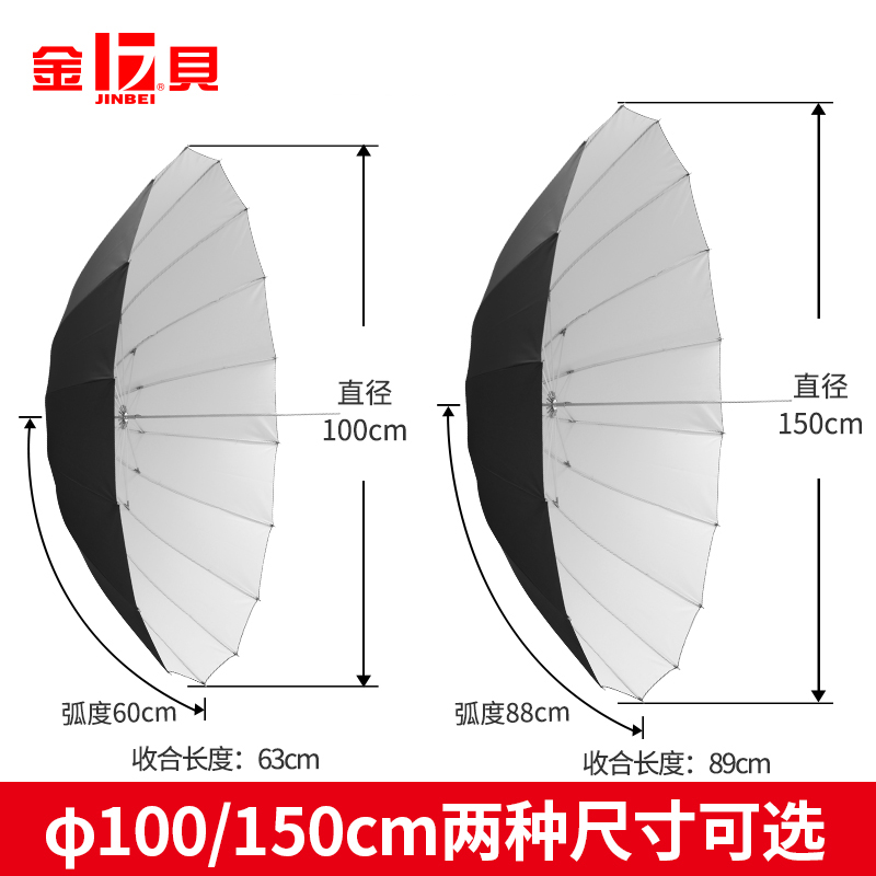 Jinbei 100 150 180cm white reflective umbrella parasol photography umbrella outside black inside white nylon umbrella rib studio photo studio photography soft light equipment professional outdoor portrait portrait clothing shooting accessories