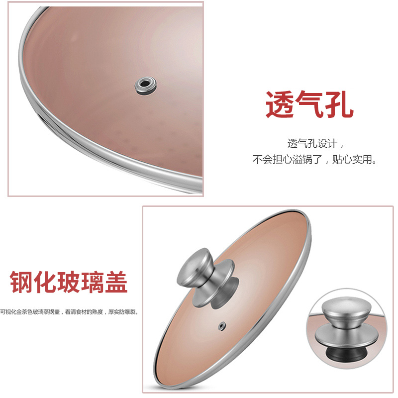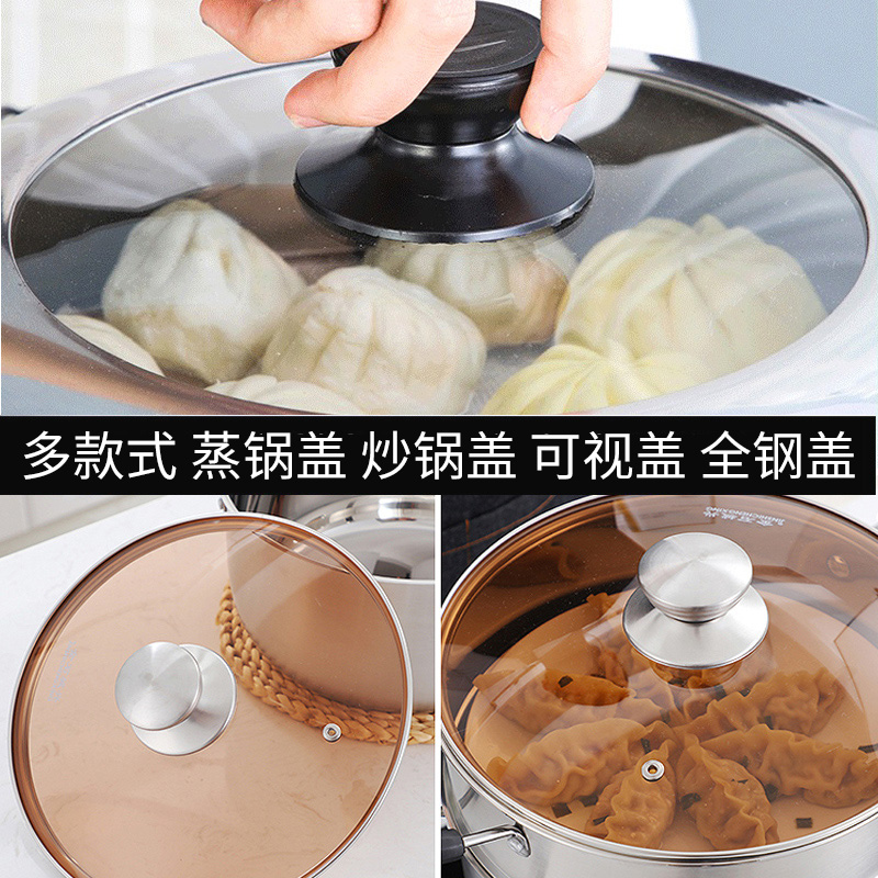 Pot cover Household stainless steel pot cover Small pot cover Pot cover Top cap Universal glass tempered pot cover Cooking pot steamer cover