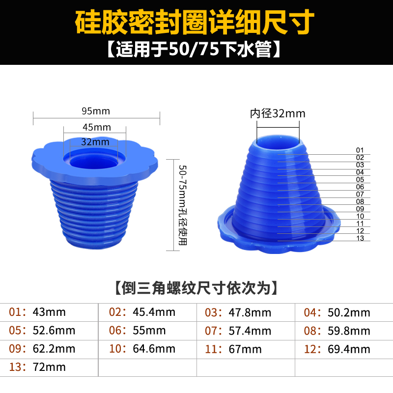 50-75 Pipe deodorant leather plug with joint special joint for sewer pipe (pisai pagoda leather tee)