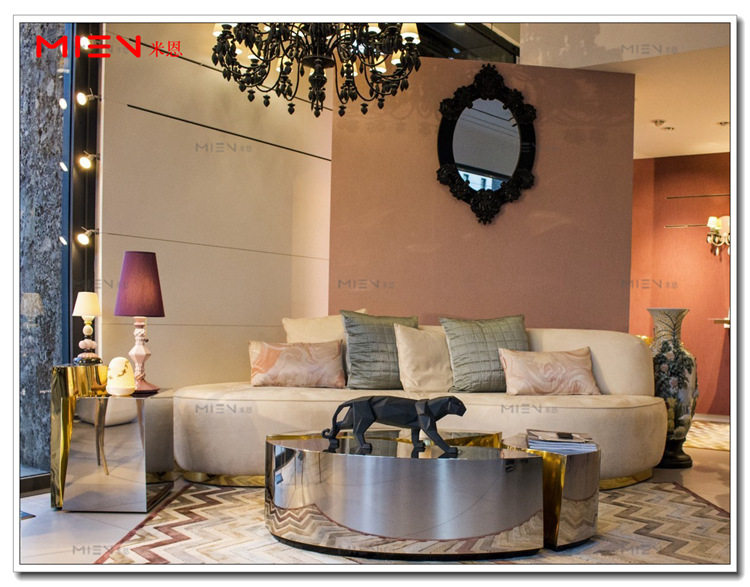 High-end Clubhouse Villa Light Lavish Combination Tea Table Comeback Bogadollobo Oval Bicolor Metal Stainless Steel Tea Table