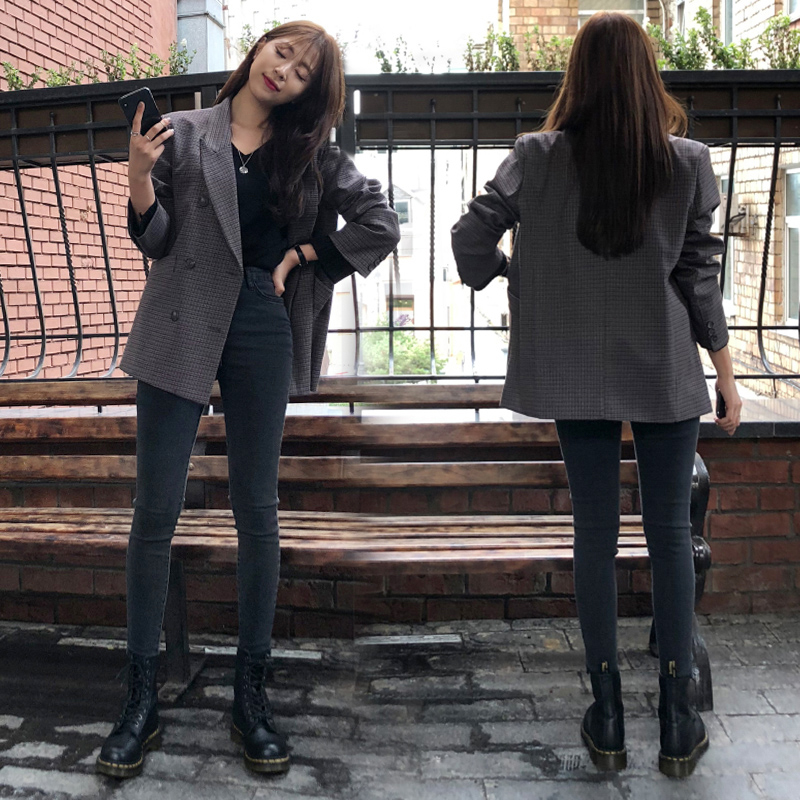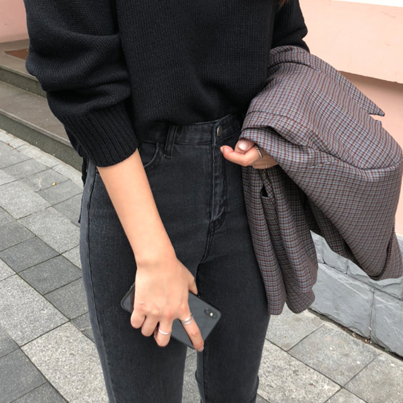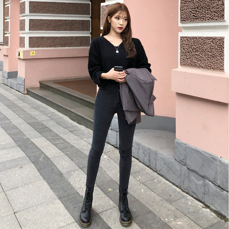 2021 new spring cigarette gray jeans women stretch thin tight narrow tube pants high waist nine-point pants women