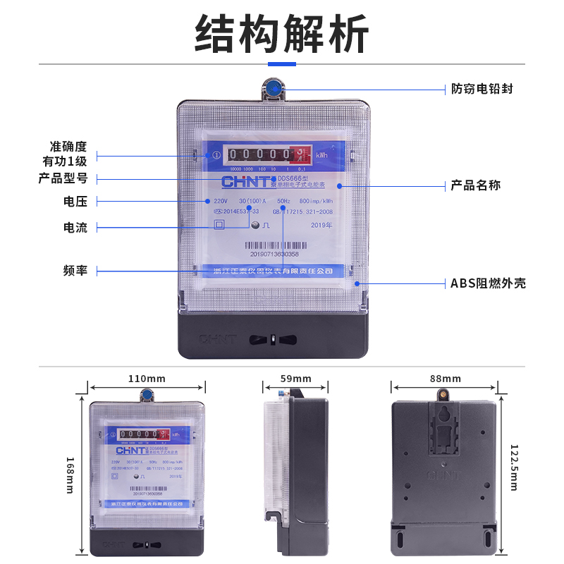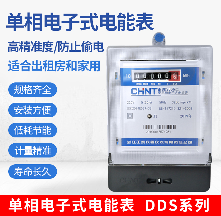 Chint electronic single-phase electric meter DDS666 electric hour meter intelligent rental house high precision household electric energy meter 220V
