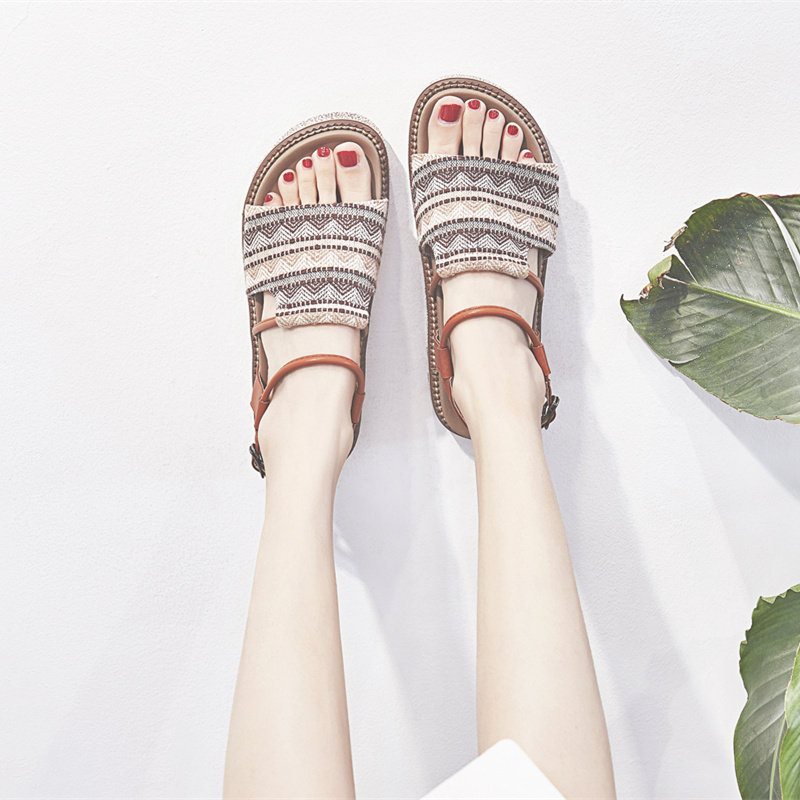 (Luxury little fan) 2021 summer wild thick-soled muffin Roman casual fairy-style chic flat sandals women's tide
