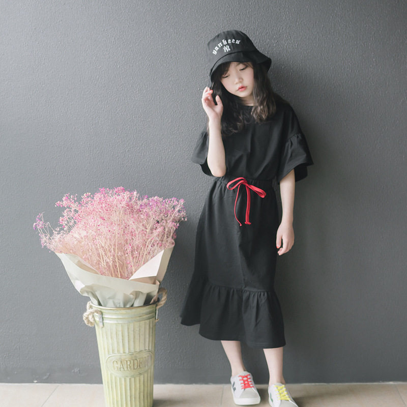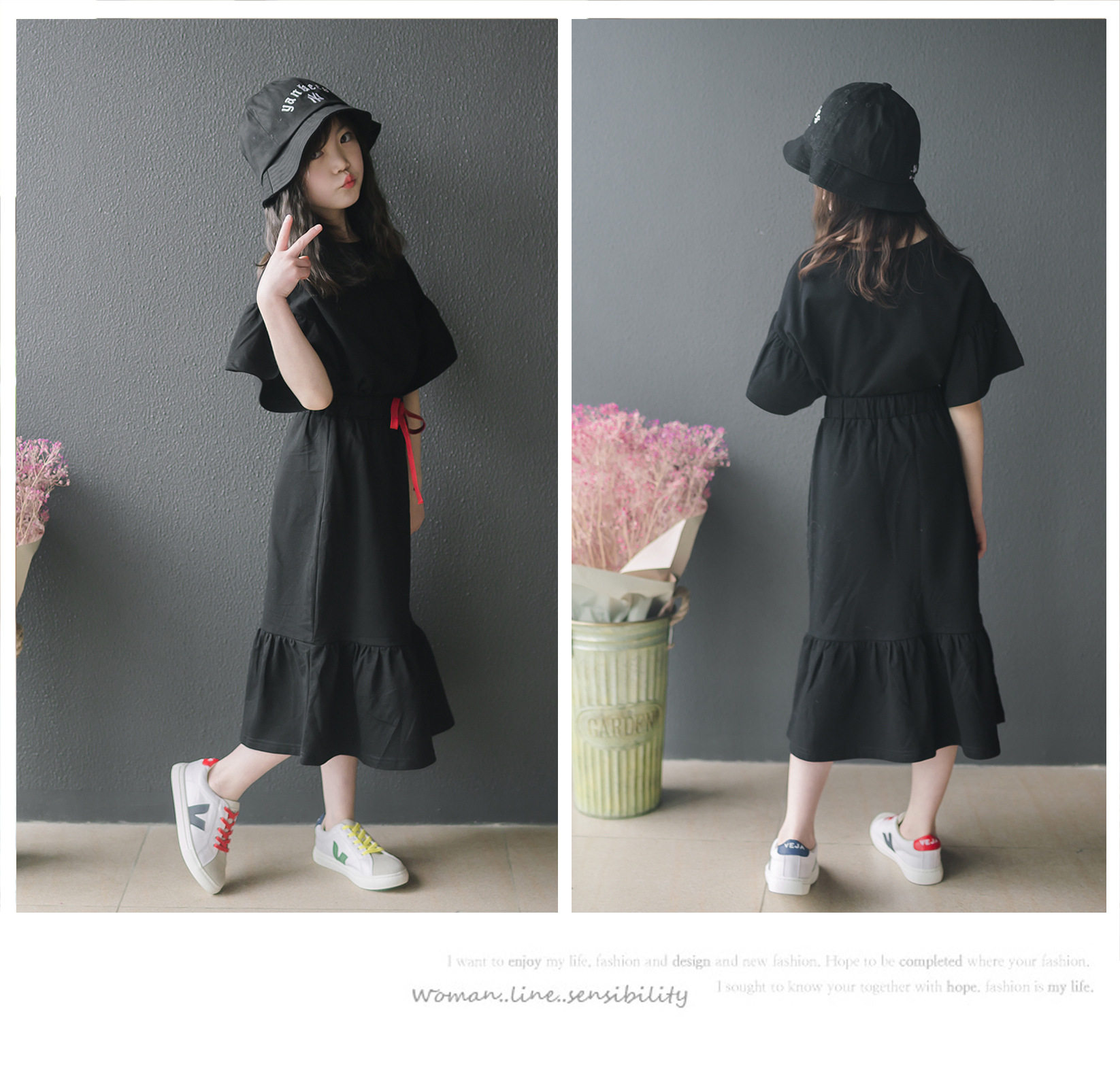 Children's clothing girls spring suit skirt 2019 new children's middle-aged children's fashion Western style solid color cotton 2-piece skirt