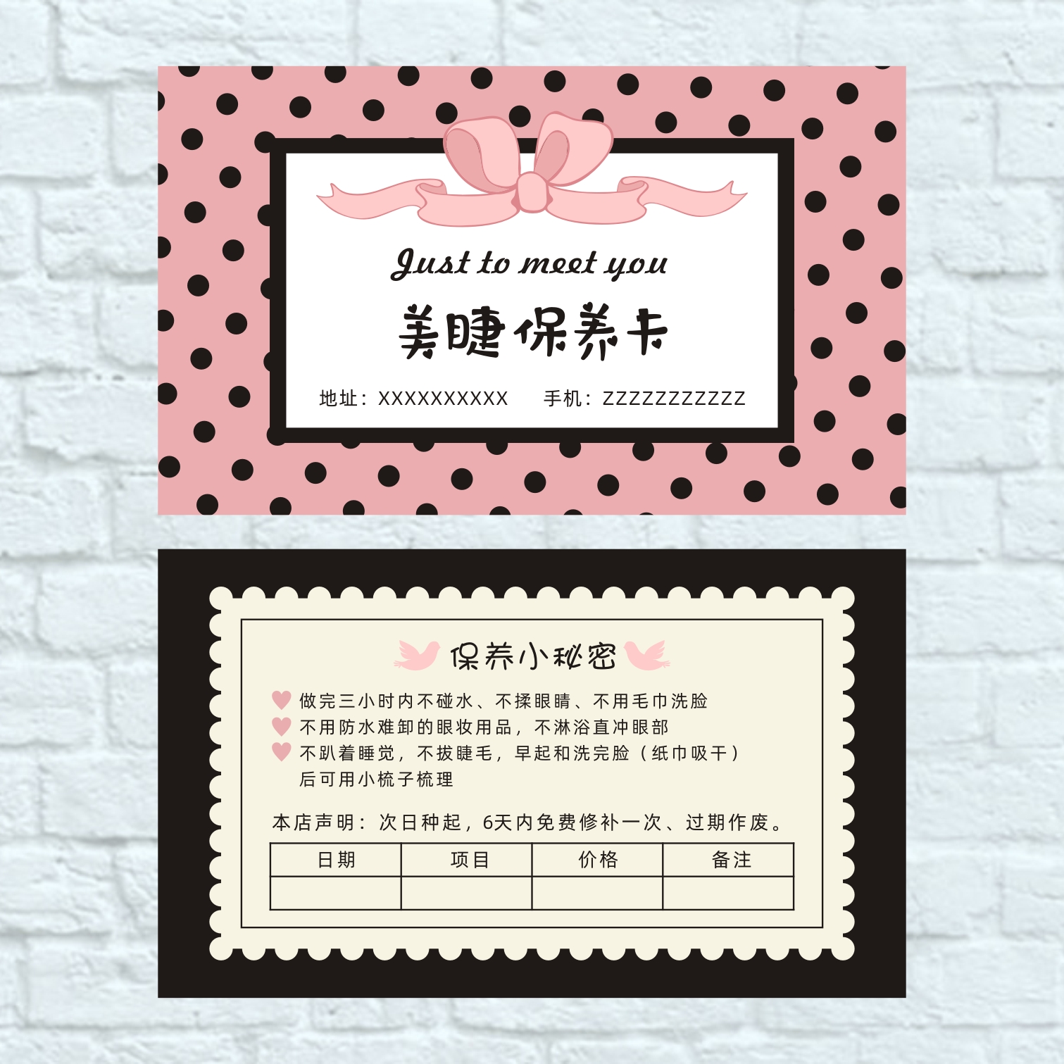 Post-sales US Mascara Maintenance Points Card Tonic mascara Eyelash Graft Note Card Name Card Design Making-Taobao