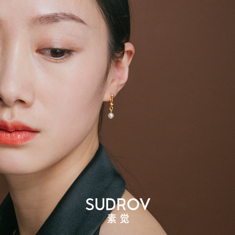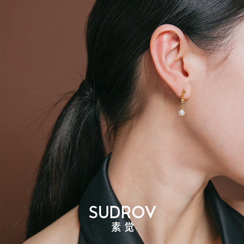 Suzuki 2023 new pure silver plated 18k gold tiny ear crash female pearl earrings with simple ear tide