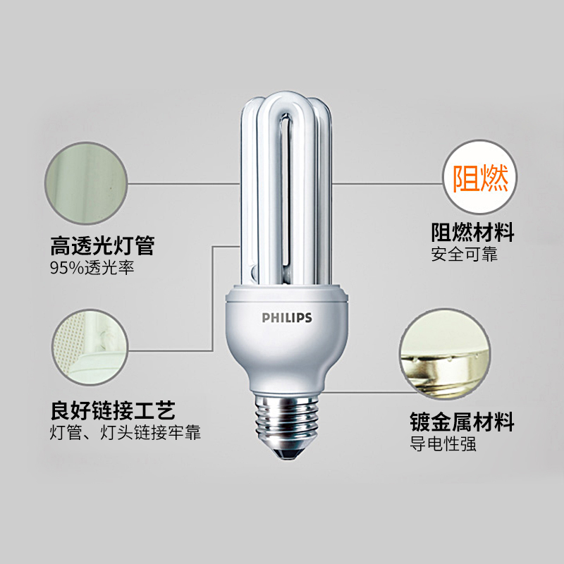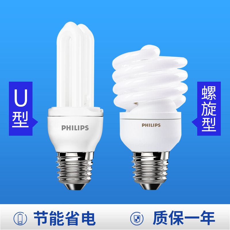 Philips LED lighting energy-saving lamp household ultra bright white light e27 screw port 2U spiral table lamp bulb U-thread