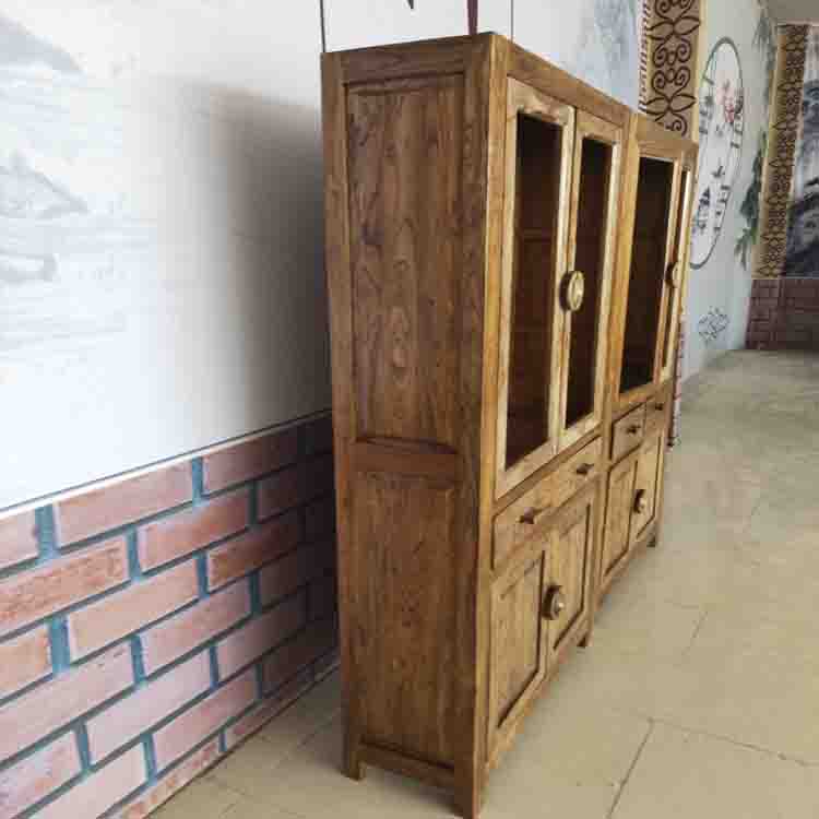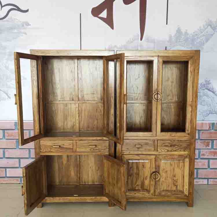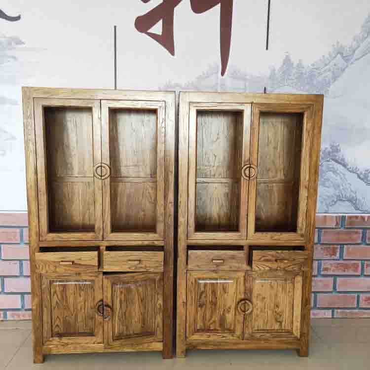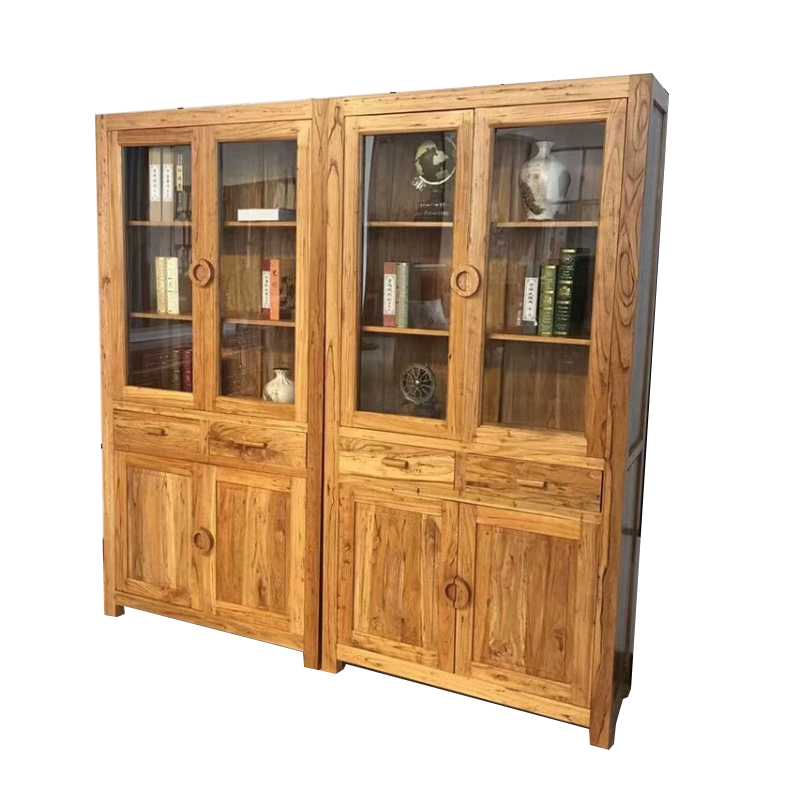 All solid wood bookcase with glass old elm furniture office file cabinet modern simple log Bo antique locker