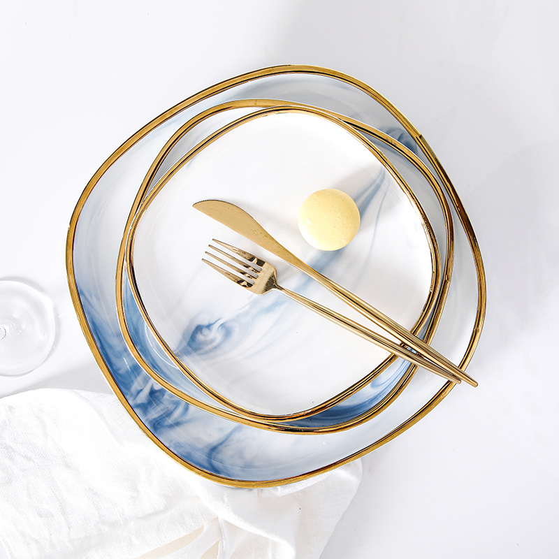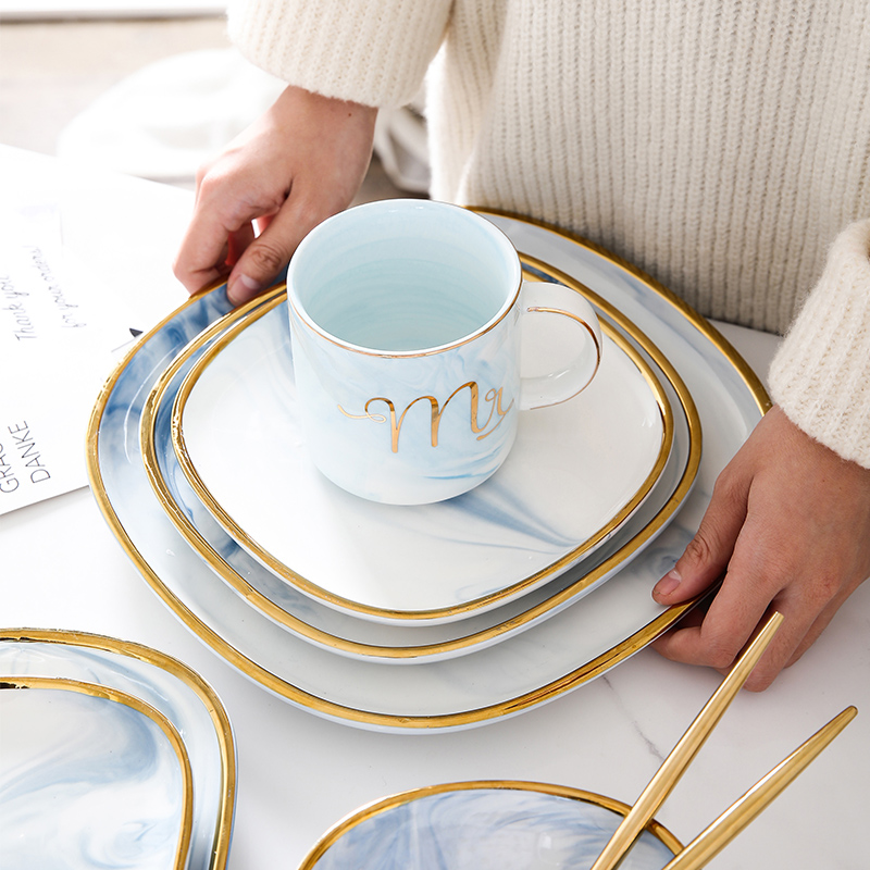 Nordic Phnom Penh marble one person food girl heart tableware Breakfast bowl Oat bowl Light luxury bowl Western spoon set