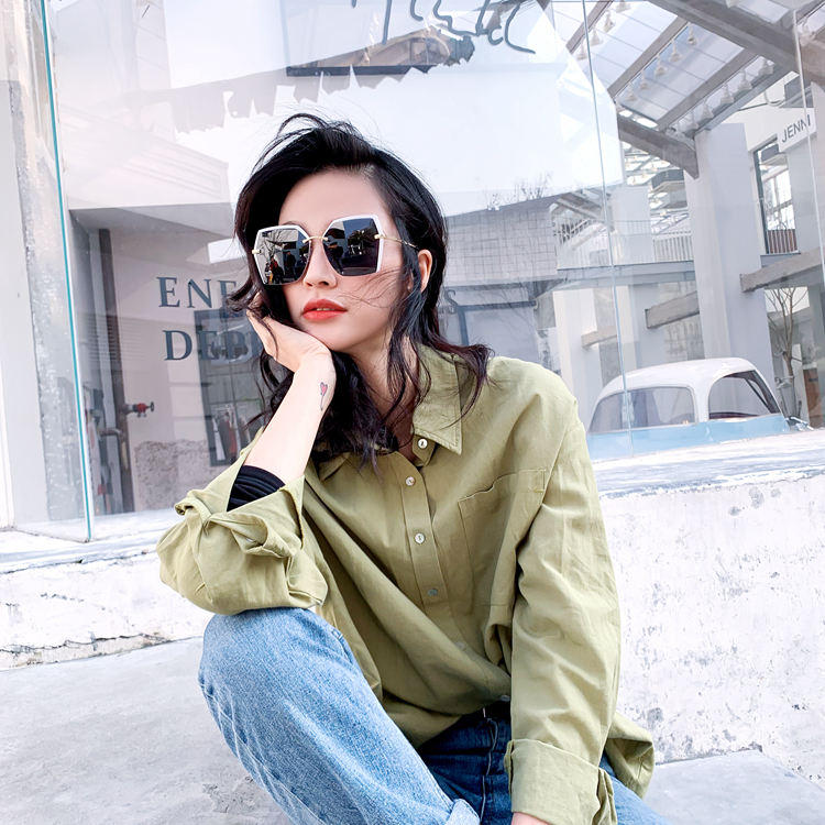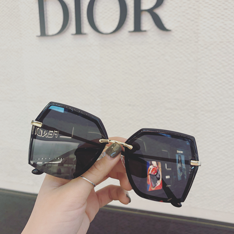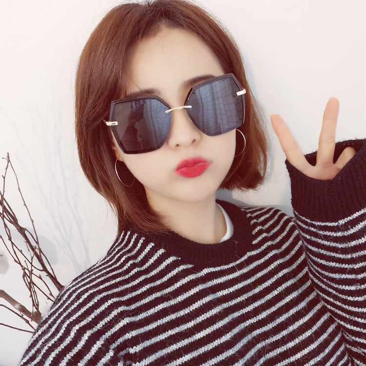2019 ultra-thin no-frame polygonal sunglasses female Chains wind retro sunglasses male and female large face polarized sunglasses