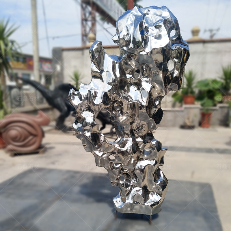 Modern Crafts Gifts Swing Accessories Community Clubhouse Forest Landscape Abstract Stainless Steel Taihu Stone Sculpted Metal Mirror Pendulum