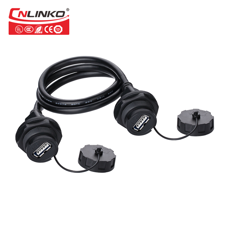 Lingke USB2 0 panel mount waterproof male and female plug socket dual network port male and female seat can extend the cable