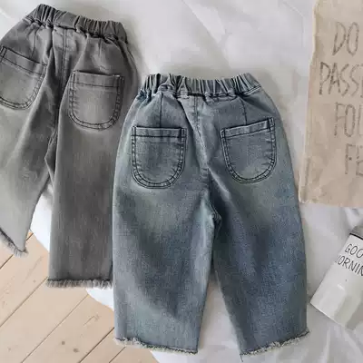 Korean baby burr straight jeans 2021 autumn new men's and women's children's baby casual long pants