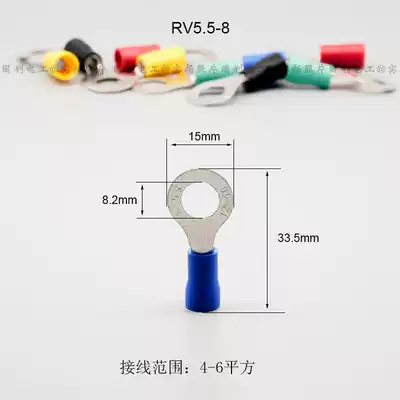 RV5 5-8 round pre-insulated terminal O-type cold-pressed terminal European-style sheathed copper terminal wire ears