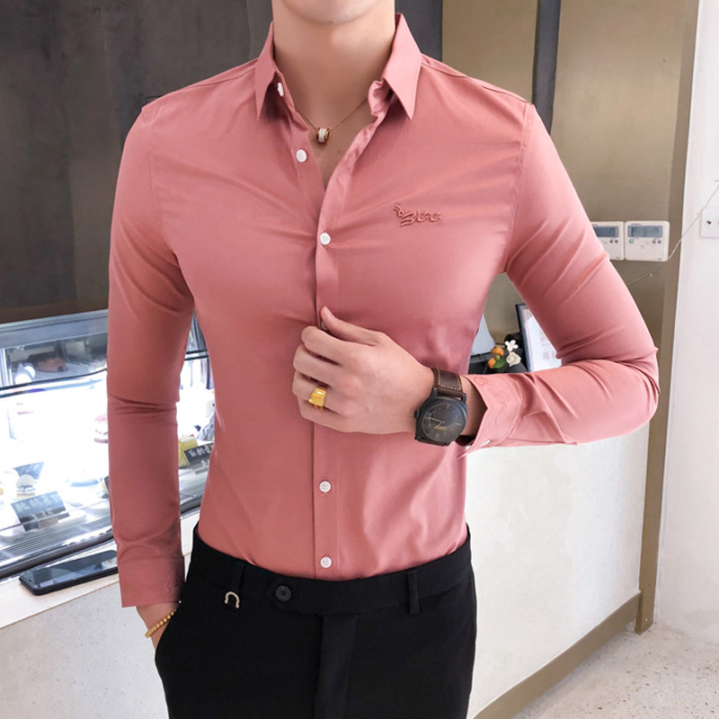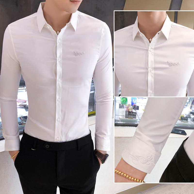 Men's shirts, long-sleeved Korean version, trendy, handsome, spring, slim-fitting shirts, high-end business formal wear, casual embroidered shirts