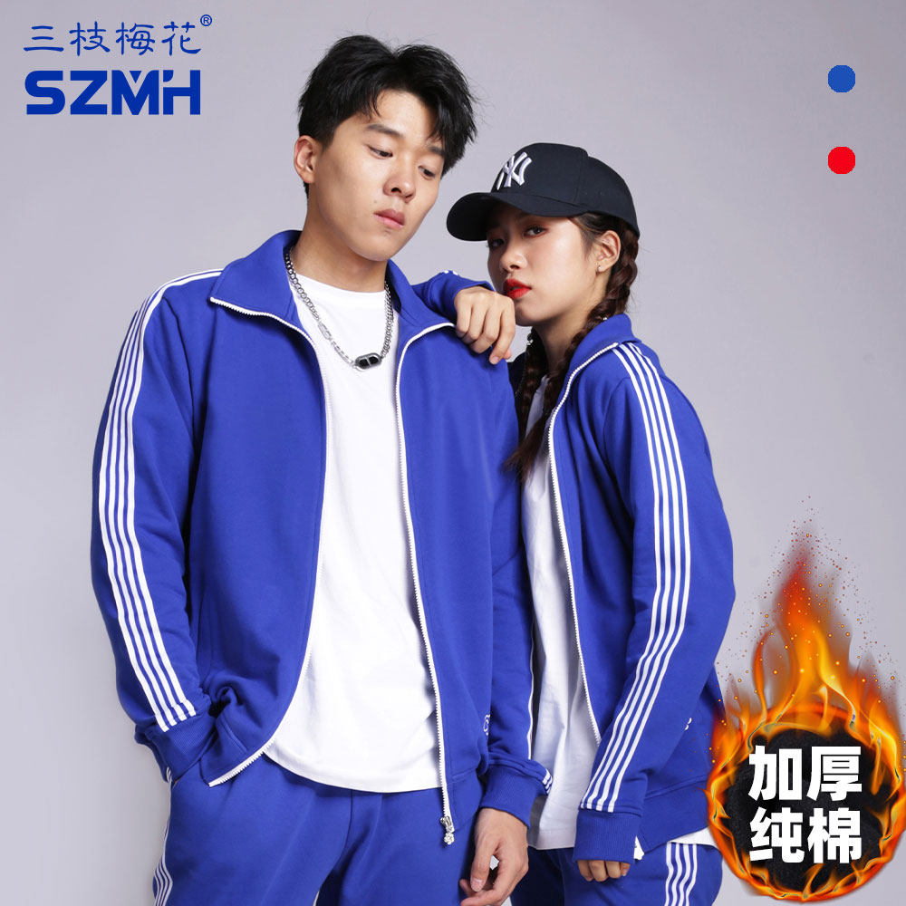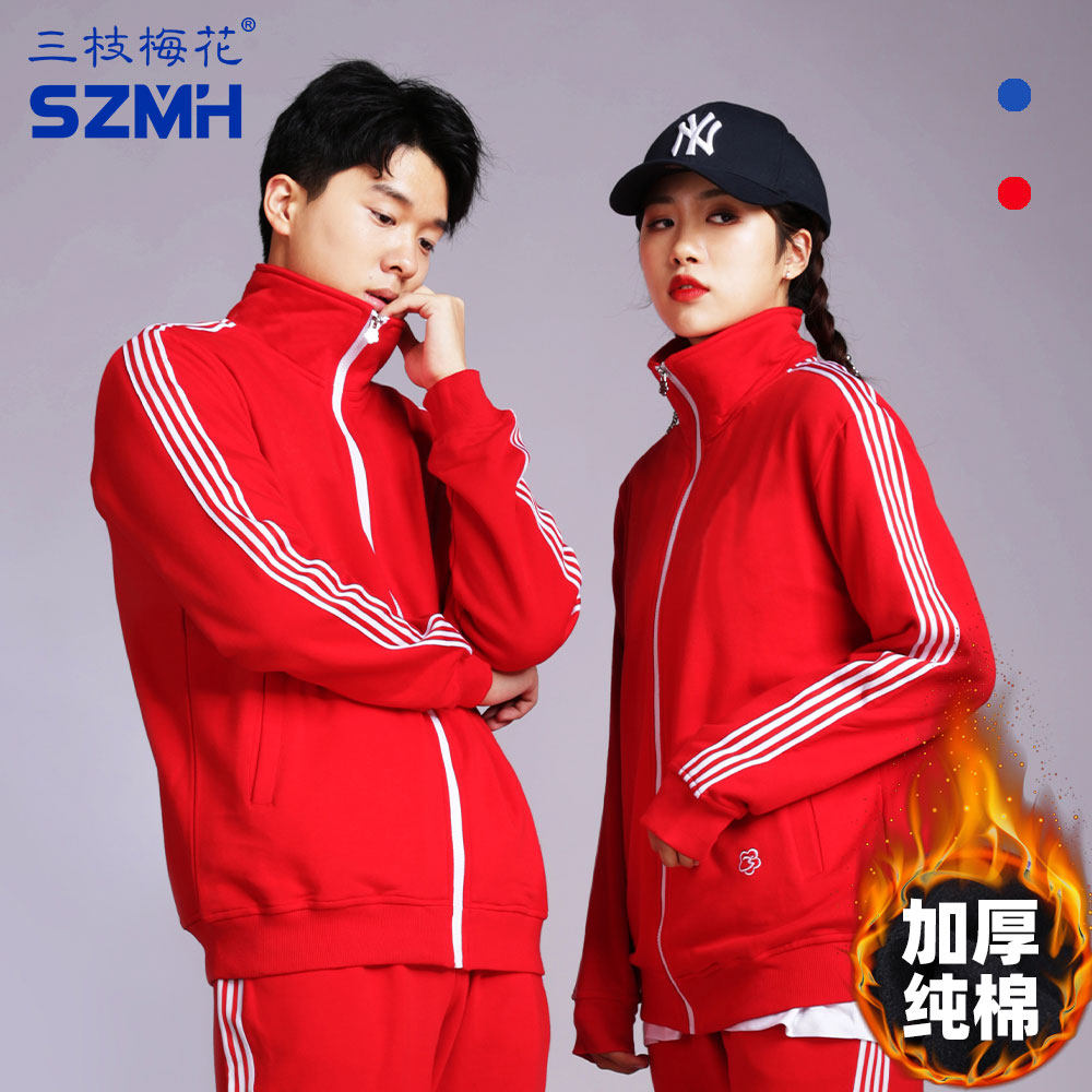 Three Branches Plum Blossom sports clothes jacket men's thickened autumn and winter new pure cotton casual blouse women lovers team customized