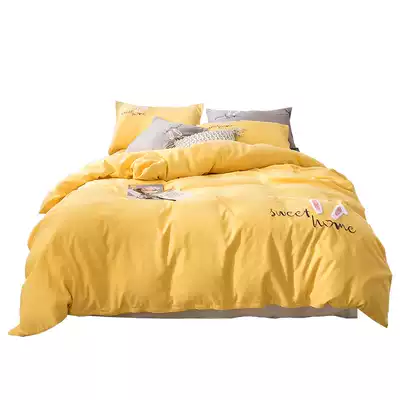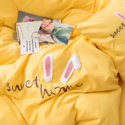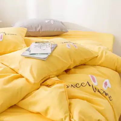 Four-piece bed network red same bed quilt cover cute girl cover cover student dormitory three-piece yellow Toner