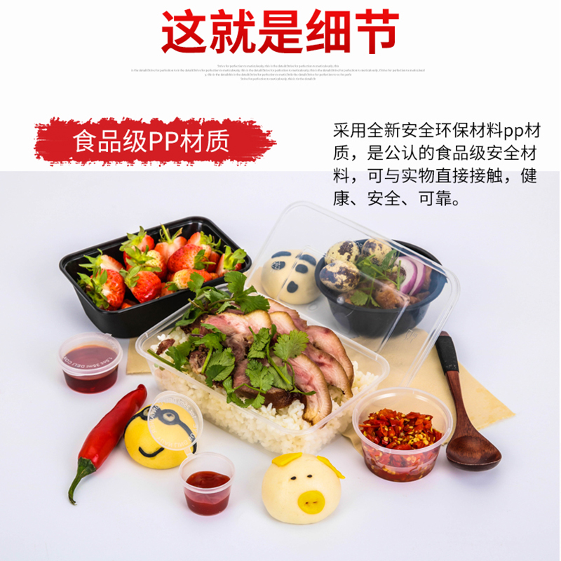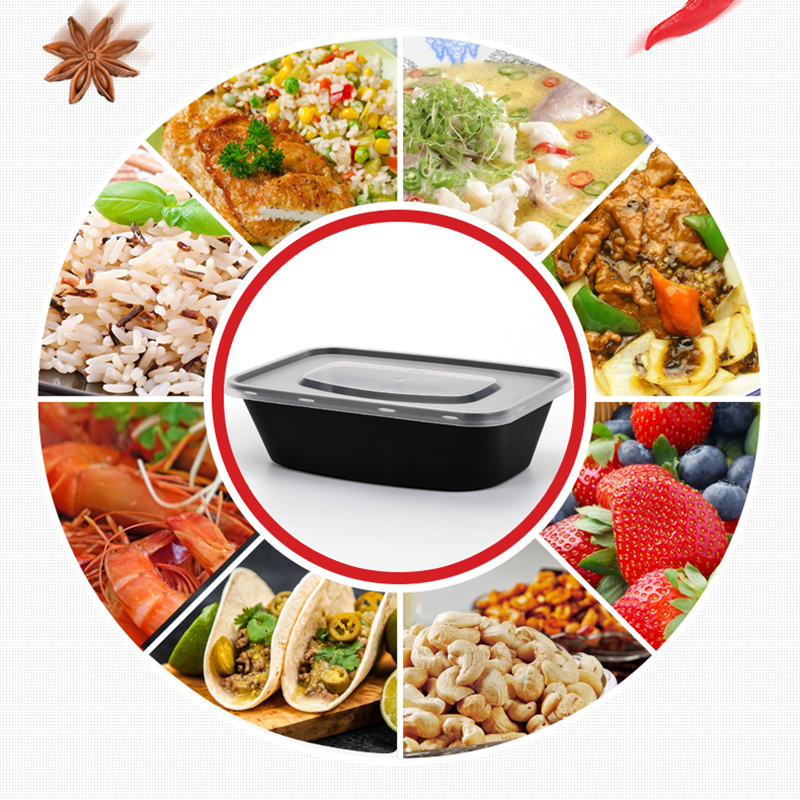 Rectangular 750ML Disposable Meal Kit Takeaway Snack Pack Box Thickened Black Plastic Lunch Box Lunch Soup Bowl