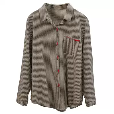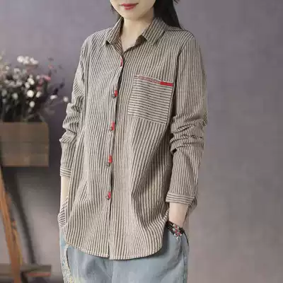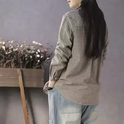 Han Soyi literary retro spring new cotton shirt women loose long sleeve embroidered top striped inner jacket