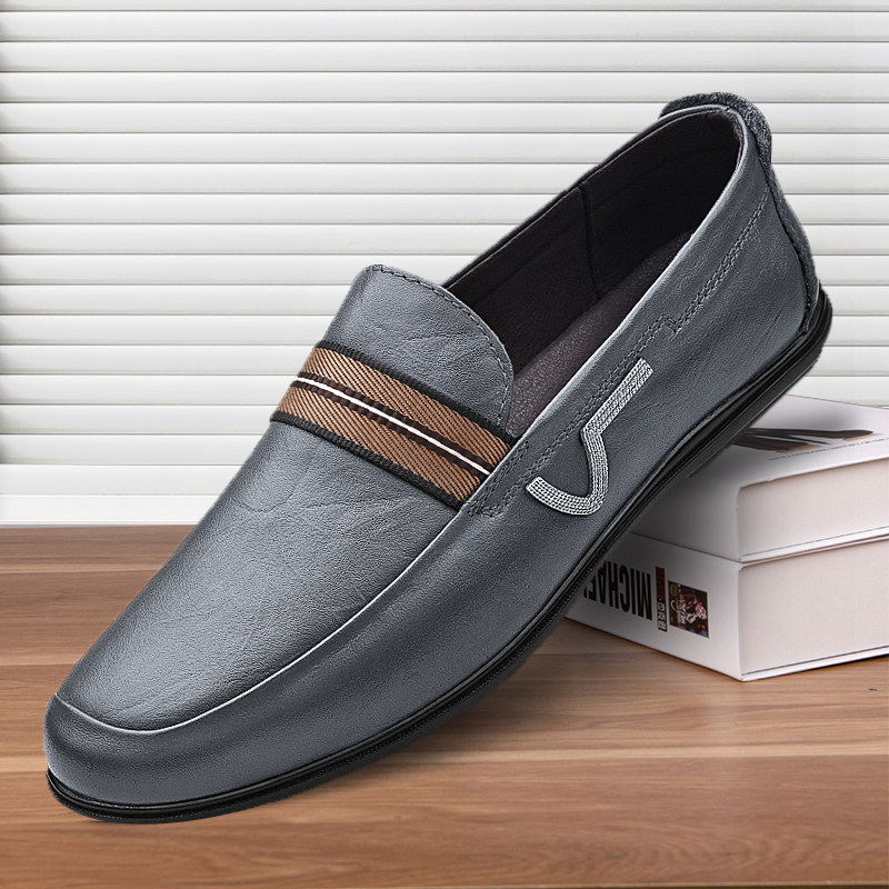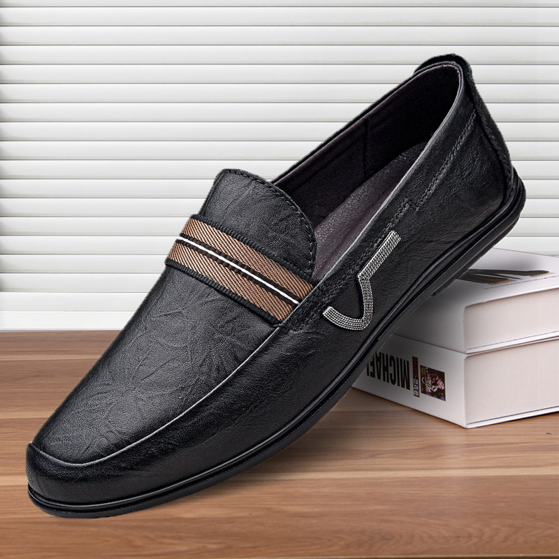 Men's shoes Summer frosted cow leather men's casual leather shoes Men's leather Han version One foot pedal Soft bottom sloth man Bean Bean Shoes Man