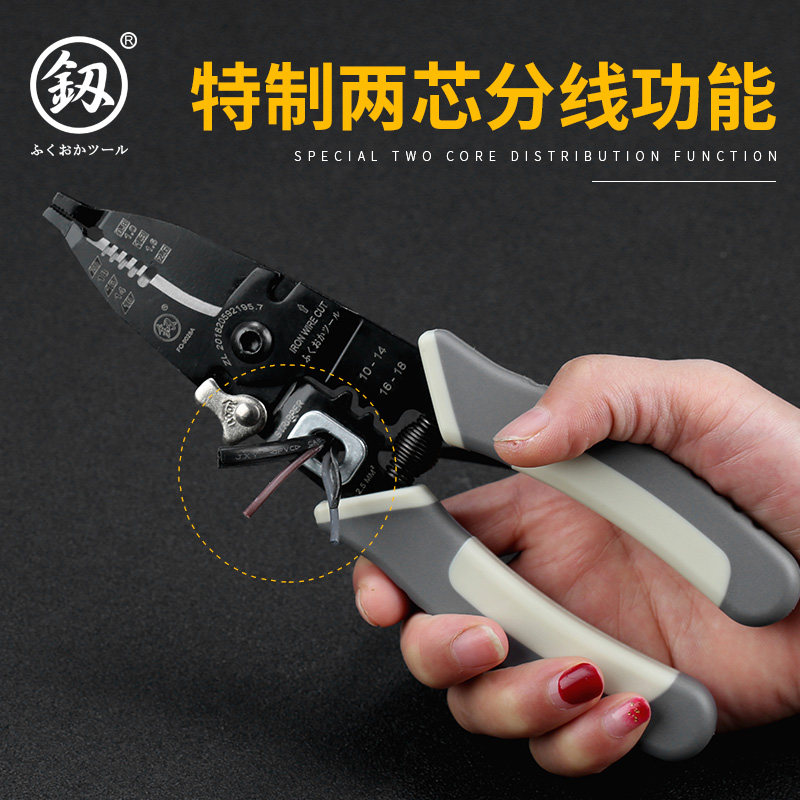 Japan Fukuoka wire stripper Industrial grade multi-function wire scissors Peeling pressure dial wire stripping pliers Electrical tools