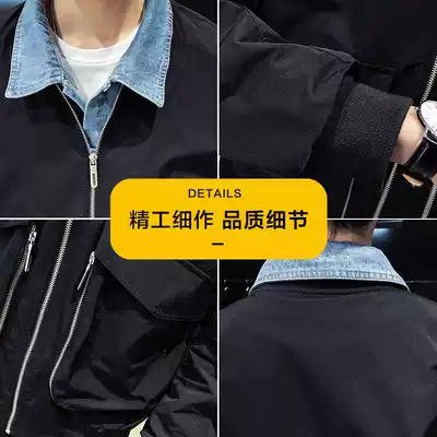 Autumn coat men spring autumn 2021 new fake two trend handsome denim jacket men's casual clothes