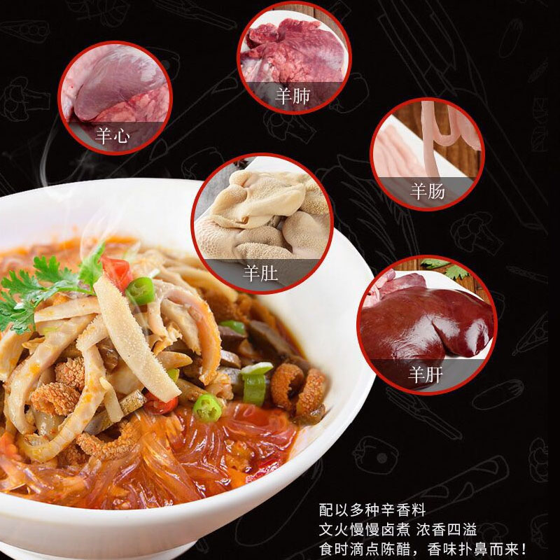 Selected purple flower lamb Lamb lung Lamb liver Wool belly Lamb intestines Lamb heart Lamb bone Salt White sugar Spices Pepper Food additives