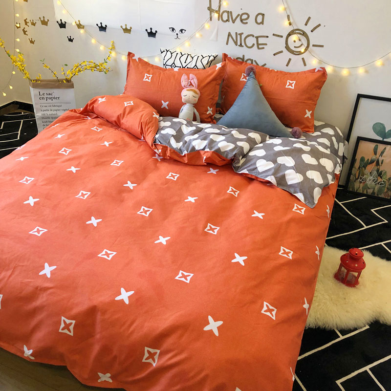 European and American fashion fashion brand net red bed four-piece set personality men and women quilt cover sheet student dormitory single three-piece