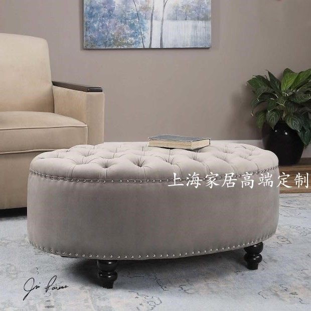 Nordic light luxury simple cloakroom fabric changing shoe stool bench oval leather pier clothing store sofa small footstool