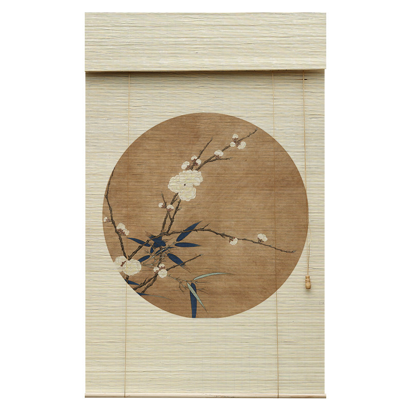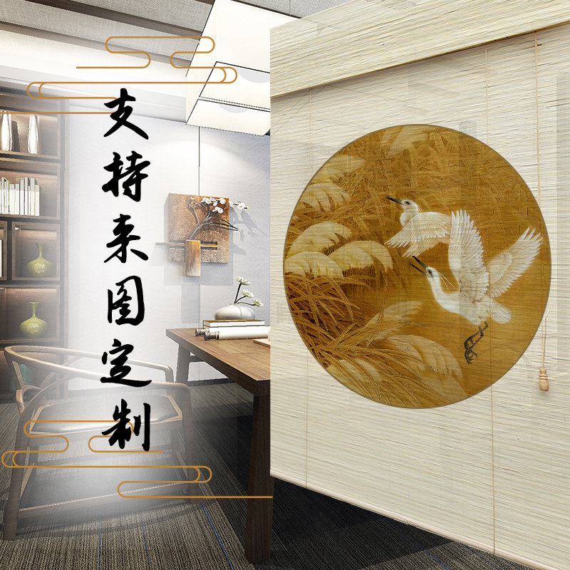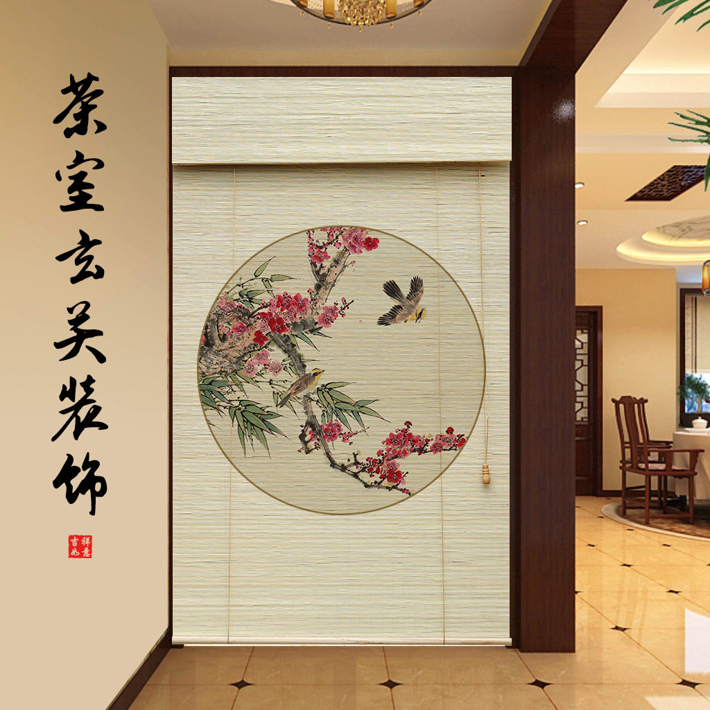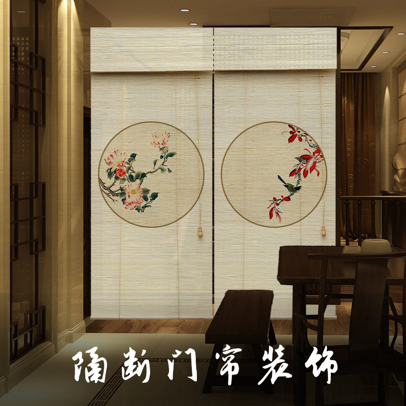 Printed bamboo curtain roller curtain curtain Retro entrance background partition curtain shading Japanese and Japanese classical teahouse round flower