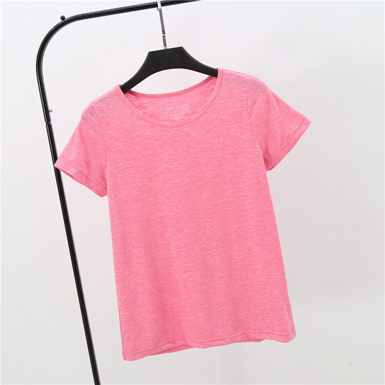 Women's summer slub cotton T-shirt solid color round neck short-sleeved bottoming shirt pure cotton women's T-shirt top home service Korean version loose
