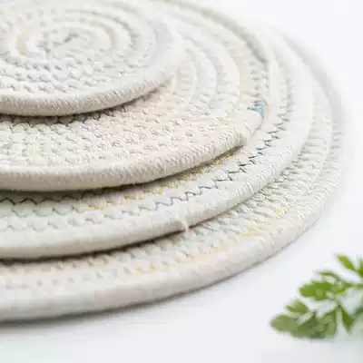 BOBAO Japanese style non-printed wind cotton line insulation mat Home kitchen insulation mat Table mat Table mat Round placemat thickened