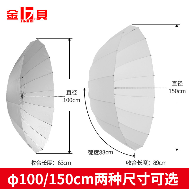Jinbei 100 150 180cm white soft light umbrella professional sunshade studio photography umbrella nylon umbrella rib photography equipment film and television photography light translucent umbrella outside shooting shading umbrella photography reflective umbrella