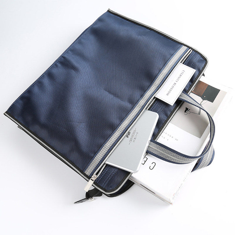 Briefcase men's business portable simple A4 file bag women's large-capacity office bag canvas waterproof information meeting bag