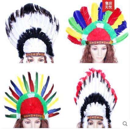 African drum performance headwear Halloween Chief feather head Decorated Wild Man Feather head Decorated Wild Indian Hat