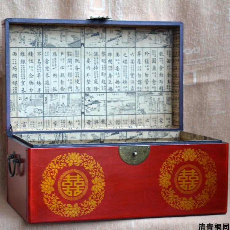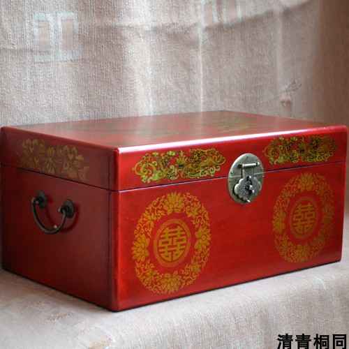 Antique vintage large jewelry box Jewelry box Wedding dowry gift gift red double happiness word storage box to accompany the wedding