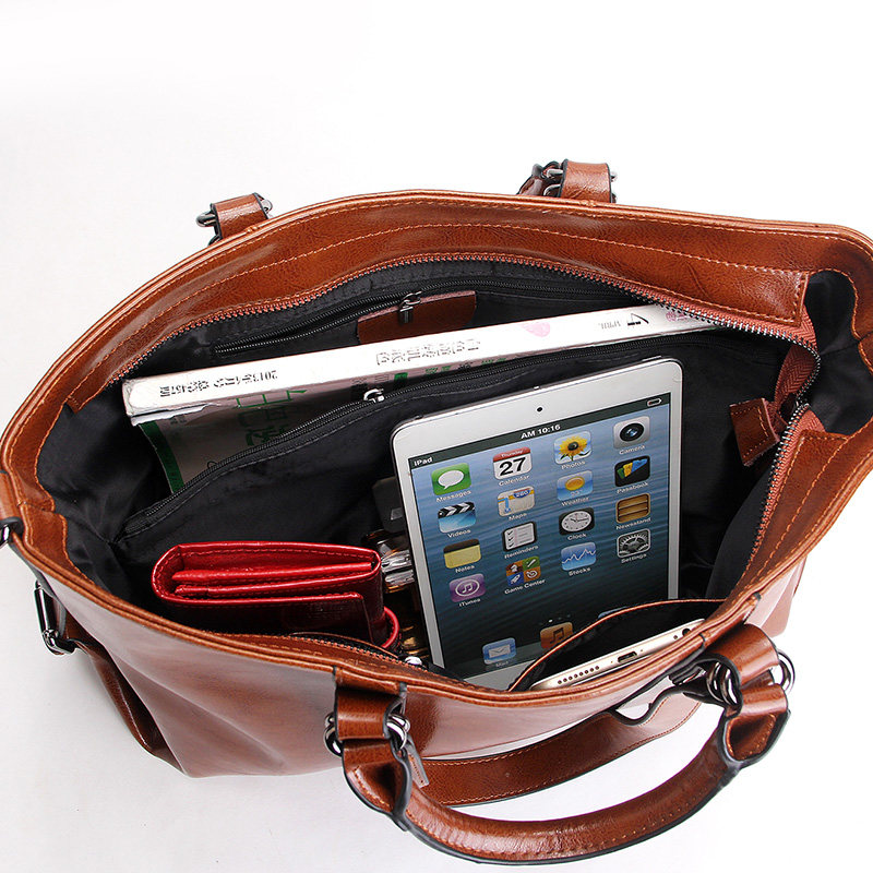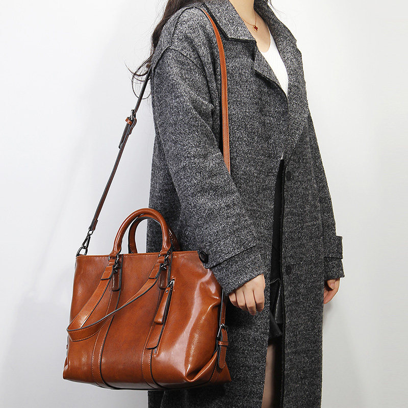 2021 new genuine leather cow leather women's bag oil wax leather minimalist casual OL commute hand single shoulder inclined satchel bag