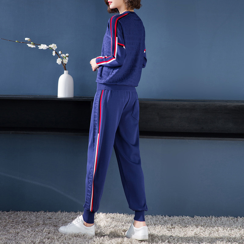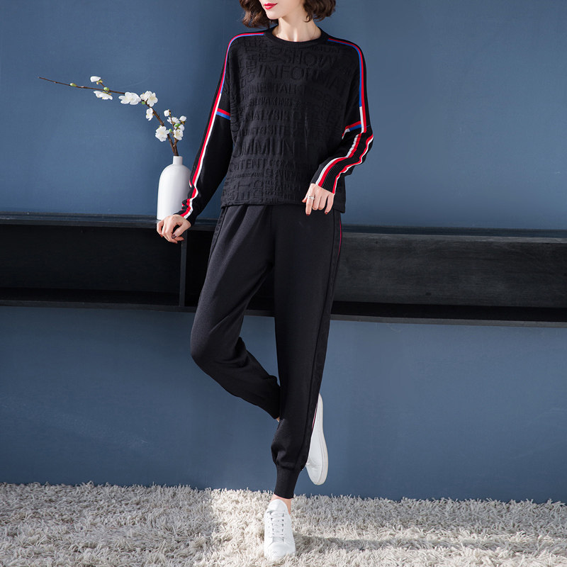 2020 spring new ice silk casual sports suit women's fashion loose all-match knitted pullover casual top two-piece set