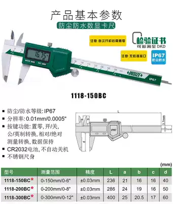 Yingshi insize dustproof and waterproof digital caliper IP67 1118-150BC 0-150200300mm English