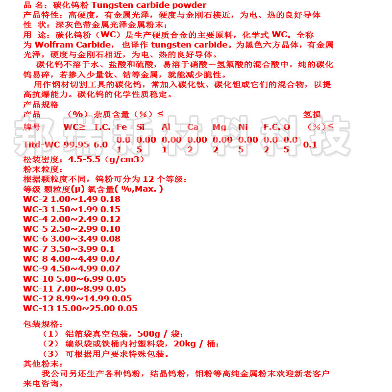 Casting WC Tungsten Carbide Spherical Tungsten Carbide Micron Tungsten Carbide Nanometer Tungsten Carbide Ultrafine Tungsten Carbide Powder