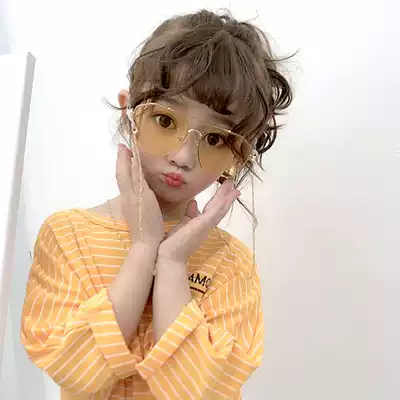 Children's sunglasses summer girls sun glasses with chain personality Korean children anti-UV baby eyes tide