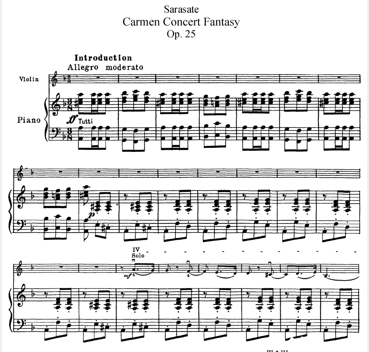 Carmen Fantasy Sarasatti Op 25 violin spectrum for piano accompaniment spectrum
