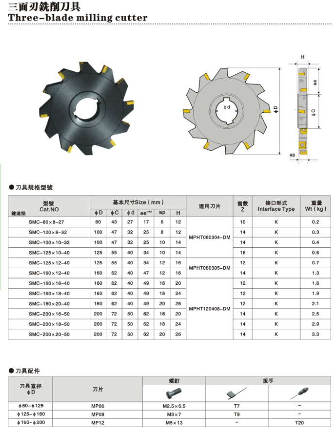 High precision indexable chip type three-sided edge milling cutter MP slot milling cutter Three-sided edge side milling 80-200m milling SMC