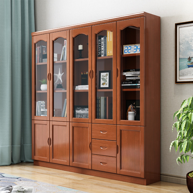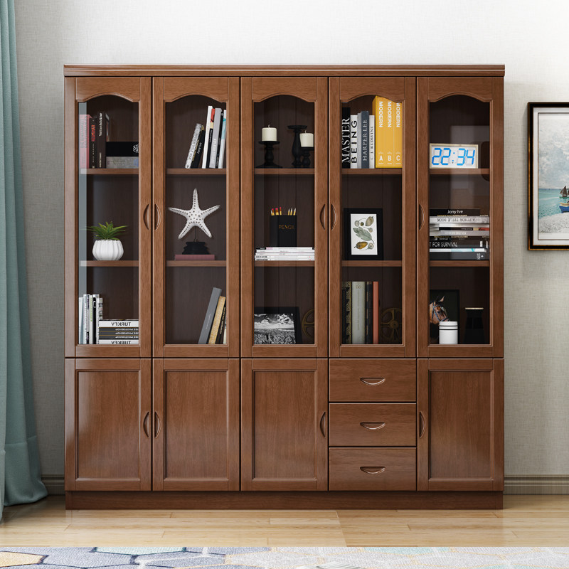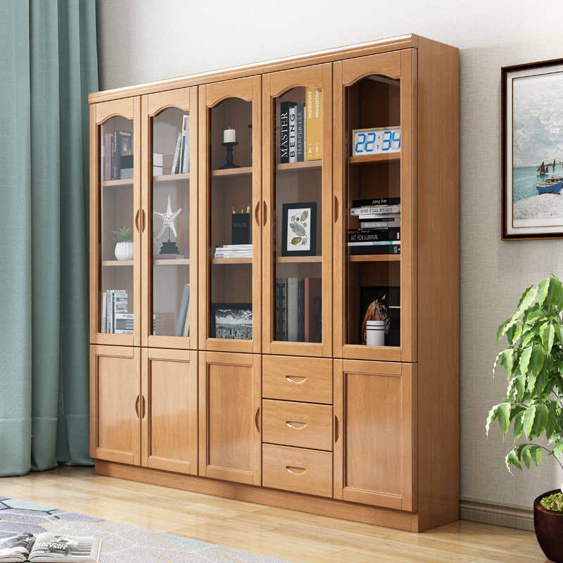 Solid wood bookcase 5-door 2-door 3-door bookcase bookcase storage locker with door with glass door bookshelf Oak
