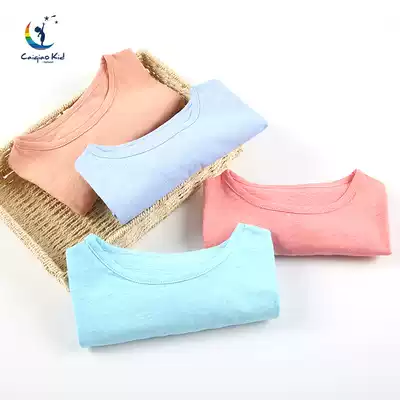 z Girls T-shirt Spring and summer short-sleeved slub cotton Children's cotton round neck top Pajamas Bottoming shirt Children's half-sleeved undershirt
